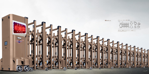 電動伸縮門主要由門體、驅動器、控制系統構成。伸縮門的門體采用鋁合金及普通方管管材制作,采用平行四邊形原理鉸接,伸縮靈活行程大。電動伸縮門的驅動器采用特種電機驅動,蝸桿蝸輪減速,并配有手動離合器,停電時可手動啟閉,伸縮門的控制系統有控制板,按鈕開關,另可根據用戶需求配備無線遙控裝置。電動伸縮門所采用的電機系的渦輪蝸桿式電機,因為其傳動原理性,穩定性高,輸出力矩大、噪音小,速度適中。